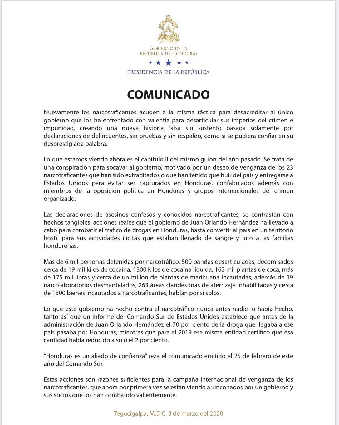 Mmm On Twitter Gobierno De Honduras Emite Comunicado Referente A Narcotrafico Https T Co Someyjxcjy Twitter